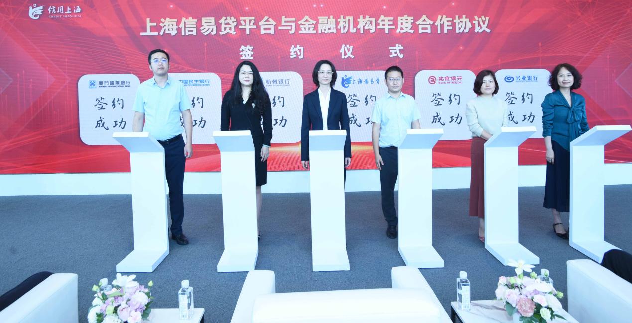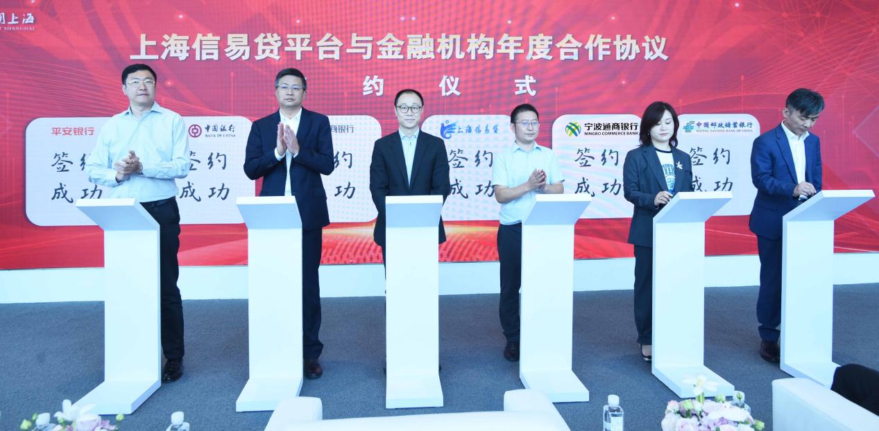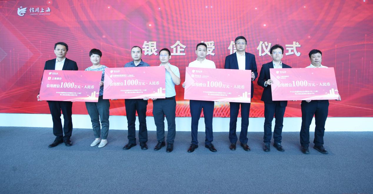 上海信易贷平台与交通银行上海市分行、上海农商银行、宁波银行上海分行、农业银行上海市分行、上海银行、厦门国际银行、民生银行上海分行、杭州银行上海分行、北京银行上海分行、兴业银行上海分行、平安银行上海分行、宁波通商银行、浙江网商银行、邮储银行上海分行、中国银行上海市分行等15家金融机构进行了年度签约。中国银行上海市分行、邮储银行上海分行、上海银行、上海农商银行等合作金融机构现场发布金融产品,并为四家企业代表发放“授信额度”4000万元。