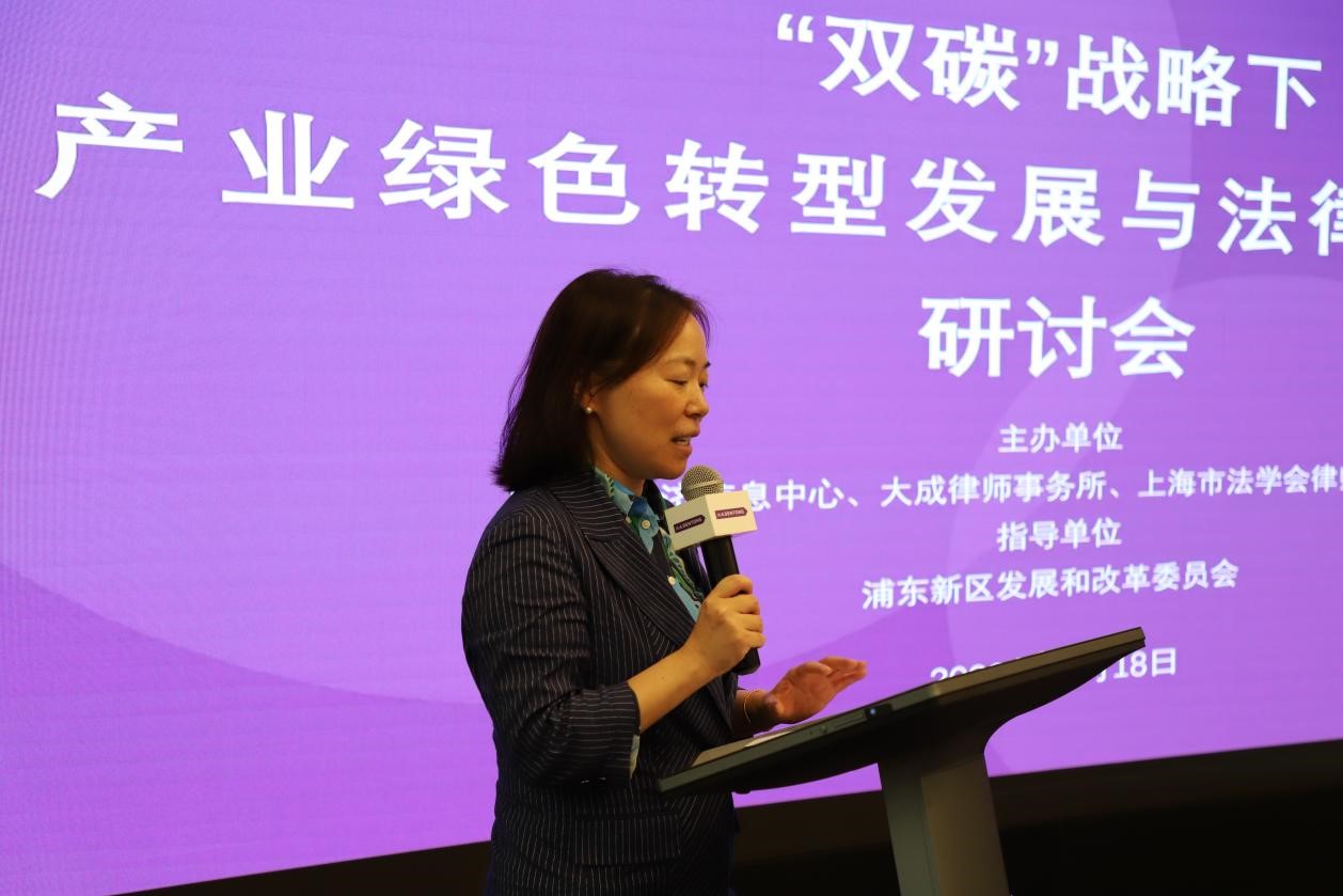 2022年11月18日,在浦东新区发展和改革委员会指导下,由上海市经济信息中心、大成律师事务所、上海市法学会律师法学研究会联合主办的“双碳”战略下产业绿色转型发展与法律制度创新研讨会(以下简称“研讨会”)在大成上海办公室成功举办。浦东新区发展和改革委员会能源处处长蒋旭辉、上海市经济信息中心党委副书记吴乐丕、上海市经济信息中心绿色发展研究中心主任刘佳、大成全球董事、中国区董事局副主席、大成上海主任王善良、上海市法学会律师法学研究会副会长、大成上海合伙人刘蓉蓉,以及来自浦东新区司法局、浦东新区人大、浦东新区科技和经济委员会、浦东新区建设和交通委员会、浦东新区金融局、临港新片区管委会、上海环境能源交易所、金桥经济技术开发区企业协会、中微半导体、氢晨新能源、浦东环保发展、绿港生态能源、华泰证券、市节能减排中心等部门和企业的专家出席本次研讨会并作交流发言。