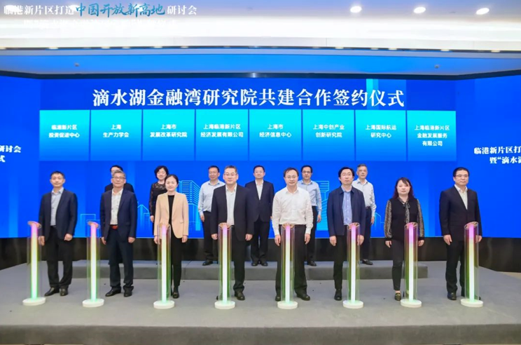 11月3日下午,“临港新片区打造中国开放新高地”研讨会暨滴水湖金融湾研究院揭牌仪式举行。市经济信息中心党委书记、主任余文凯,党委副书记吴乐丕,以及经济监测中心、低碳经济与应对气候变化中心相关人员出席仪式。