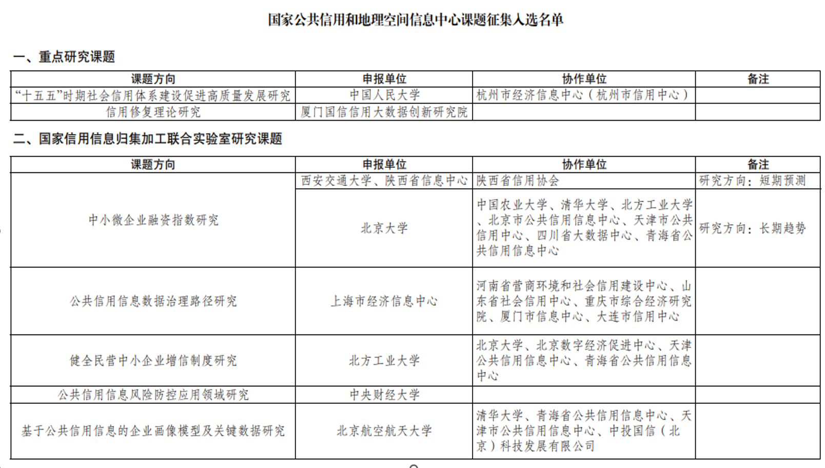 中心高度重视,并将充分发挥自身在公共信用信息加工治理等方面的经验和优势,联合河南省营商环境和社会信用建设中心、山东省社会信用中心、重庆市综合经济研究院(重庆市信用中心)、厦门市信息中心(厦门市公共信用信息中心)、大连市信用中心等协作单位,组建高水平研究团队,整合资源,深入调研,协同攻关,为国家完善公共信用信息数据治理体系,深化社会信用体系建设贡献上海智慧和力量。