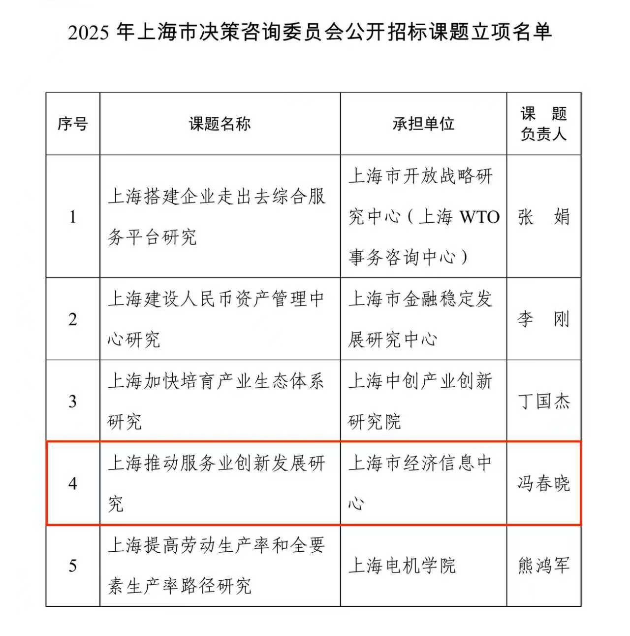 近期,上海市决策咨询委员会公布《2025年上海市决策咨询委员会公开招标课题》评审结果,市经济信息中心《上海推动服务业创新发展研究》课题成功入选。