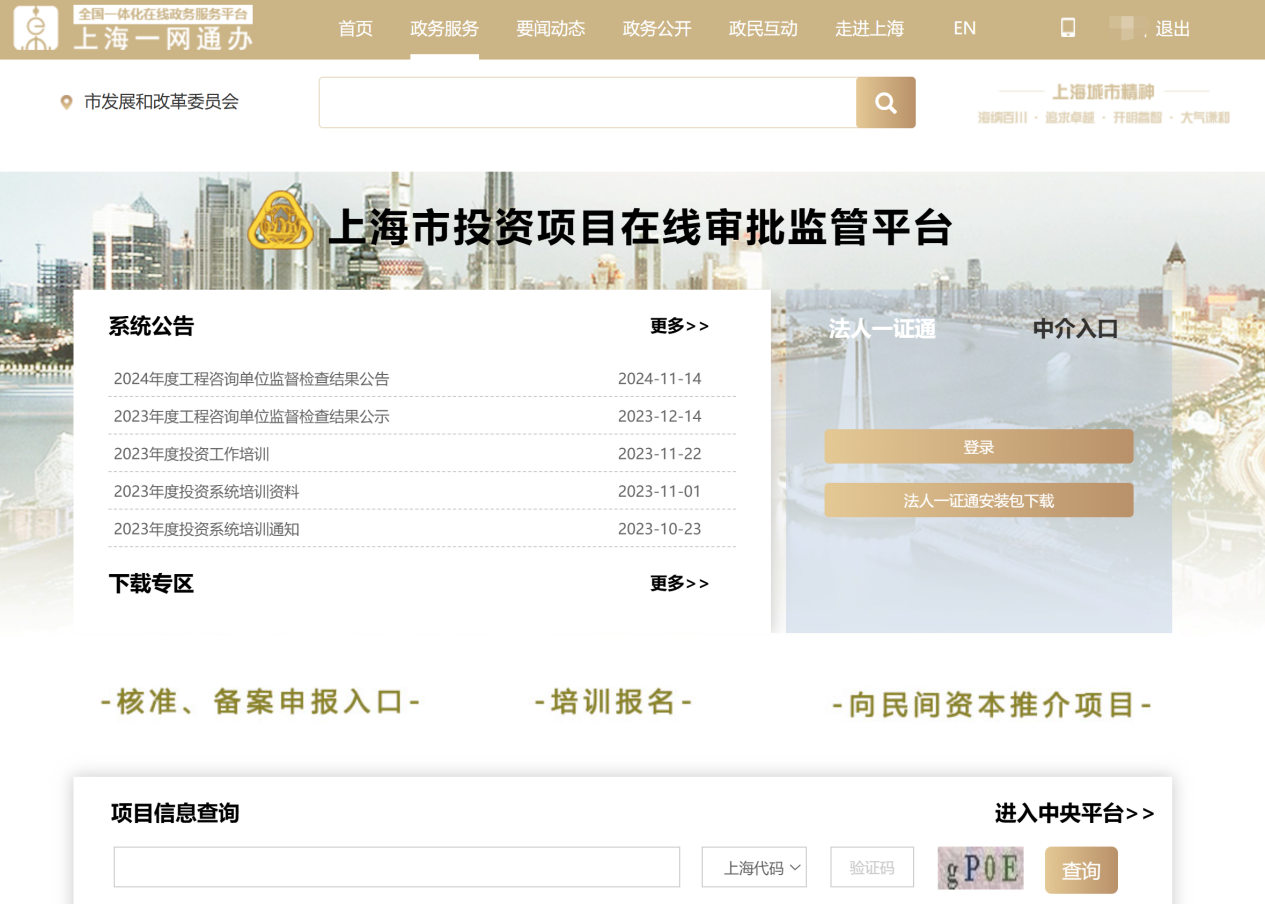 上海市投资项目在线审批监管平台是依托上海 “一网通办” 总门户搭建的固定资产投资项目综合管理服务平台,由市发展改革委统筹管理,主要用于本市各类固定资产投资项目建设实施全过程的审批、监管和服务。